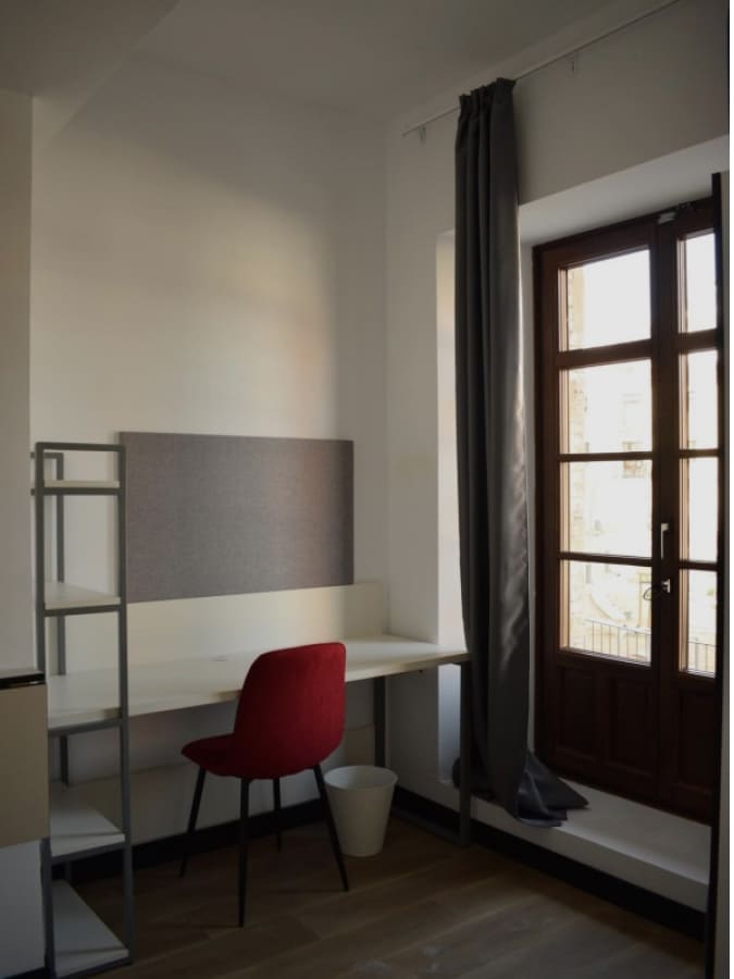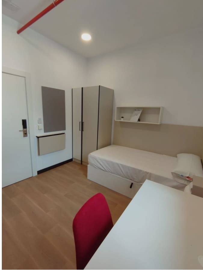 The room is equipped with furniture to live and study. The rent includes all expenses with electricity, water, and gas, internet access, as well as a biweekly cleaning and changes of bed linen and towels. It also includes access to all common areas, and the use of all equipment available in those areas.